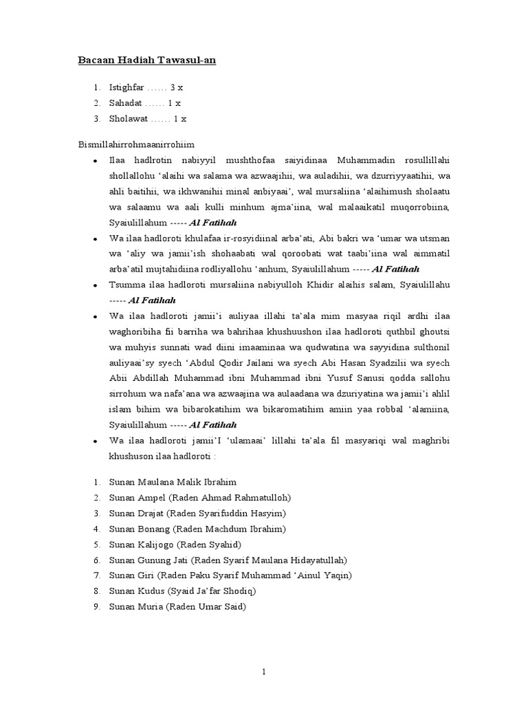 Our system stores bacaan tawasul lengkap apk older versions, trial versions. 29 downloads 265 views 51kb size. Tawasul aulia guru sekumpul pembacaan tartib fatihah. Bacaan tawasul untuk anda yang telah terbiasa itu akan menjadi hal yang penting untuk diamalkan. So please help us by uploading 1 new document or like us to download
