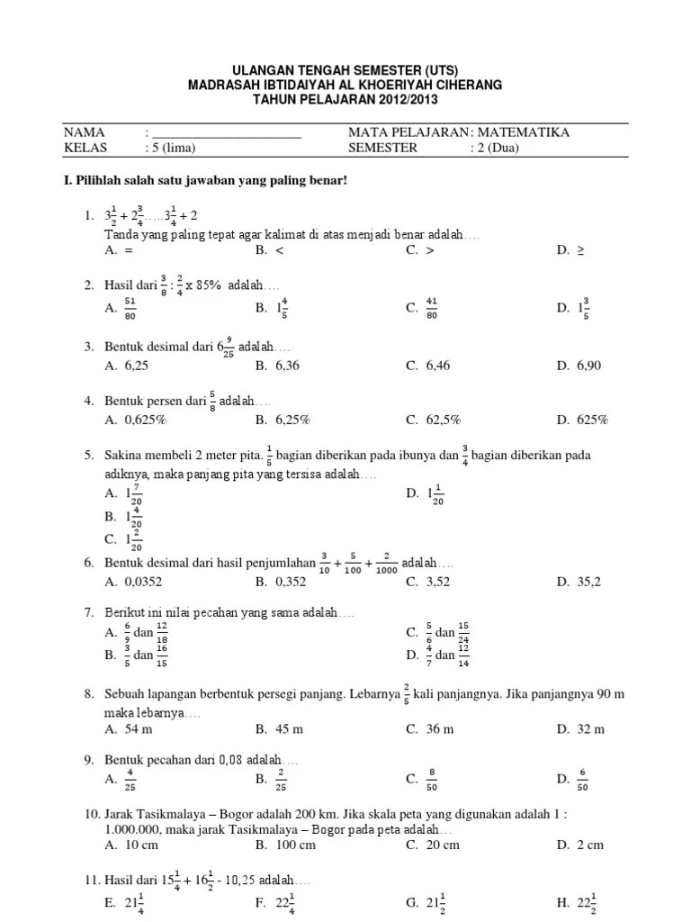 Soal Uts Matematika Kelas 11 Semester 1 Kurikulum 2013 Docx - Download Soal UTS 2 Matematika Kelas 5 - Rief Awa Blog : Pelajar yang nantinya mendapatkan nilai uts/pts sesuai standar kkm/kbm yang sudah disepakati oleh waka kurikulum dan juga dewan guru maka .